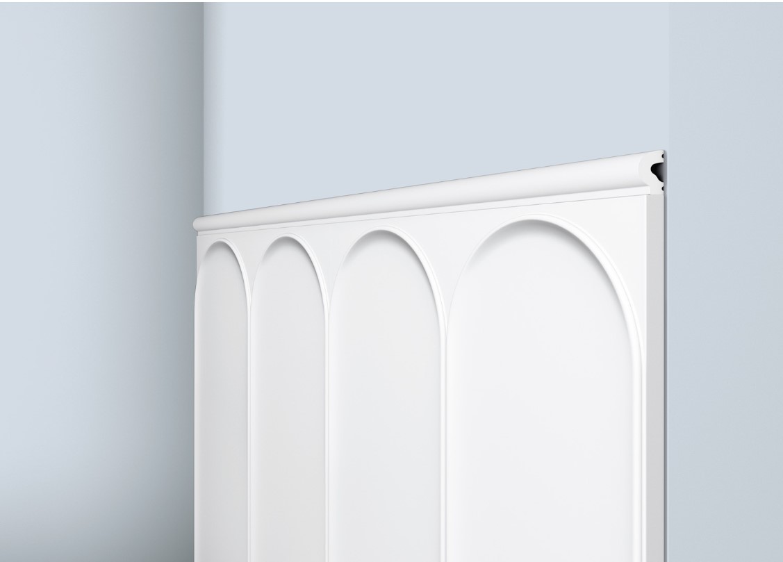 Двухметровая длина этой стеновой панели подчеркивает ее линейный дизайн, а также позволяет быстро установить ее с помощью клея ADEFIX® PLUS. ARC L поставляется загрунтованными и готовыми к покраске.