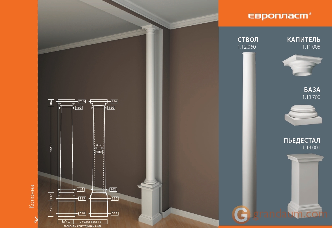 Создайте индивидуальный традиционный интерьер с помощью пилястр. В классических домах, ресторанах и гостиницах пилястры добавляют нотку элегантности и классического стиля. Прочный полиуретановый материал защищает от ударов и повреждений.