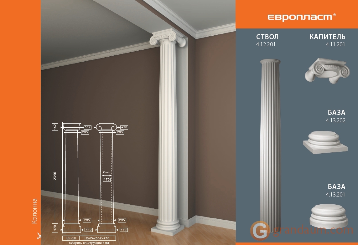 Создайте индивидуальный классический интерьер с помощью колонн из полиуретана. В классических домах, ресторанах и гостиницах колонны и полуколонны добавляют нотку элегантности и классического стиля. Прочный полиуретановый материал защищает от ударов и повреждений.