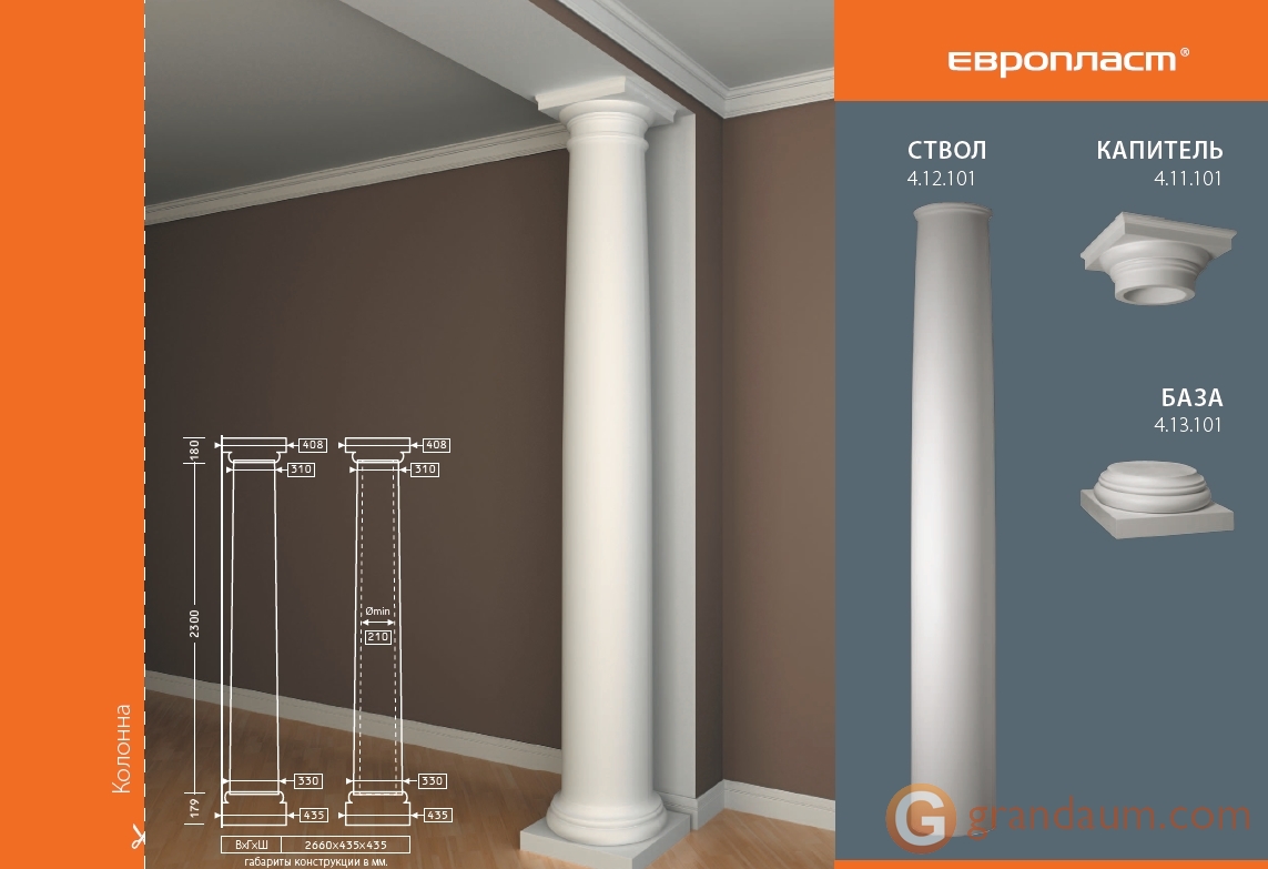 Создайте индивидуальный классический интерьер с помощью колонн из полиуретана. В классических домах, ресторанах и гостиницах колонны и полуколонны добавляют нотку элегантности и классического стиля. Прочный полиуретановый материал защищает от ударов и повреждений.