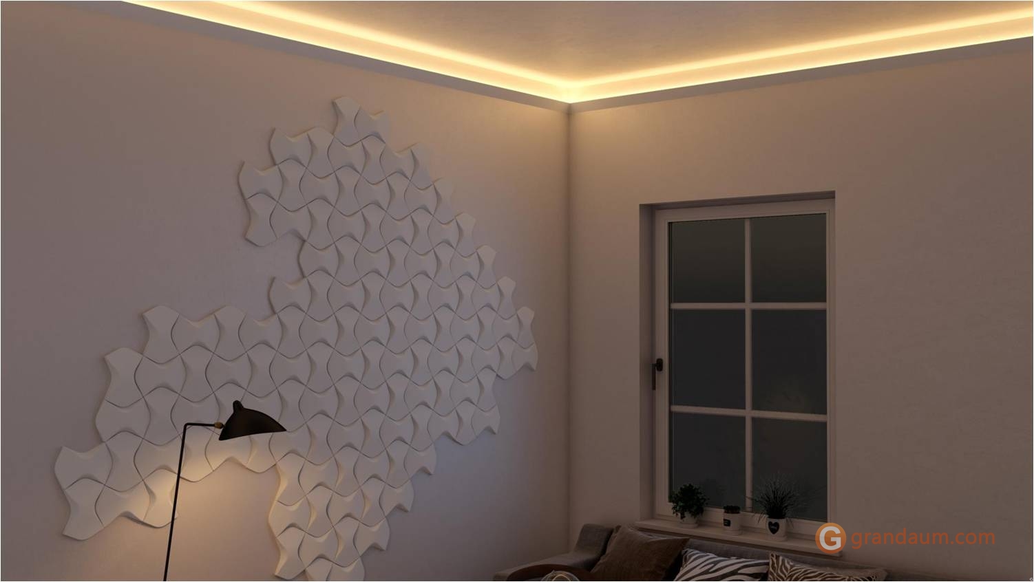 Скрытое освещение может изменить атмосферу комнаты, сделав ее теплой и уютной. Карниз NMC IL4 WALLSTYL® можно использовать в качестве непрямого светодиодного источника света для освещения стены или потолка. Геометрический карниз IL4 придает интерьеру креативную нотку. Этот продукт можно использовать для скрытого освещения или как отдельный карниз. Сочетайте IL4 с другими молдингами.