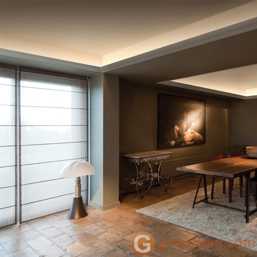 Изогнутый карниз для скрытого освещения, который создает прекрасную игру света и тени. Разработан дизайнером Жаком Верграхтом.