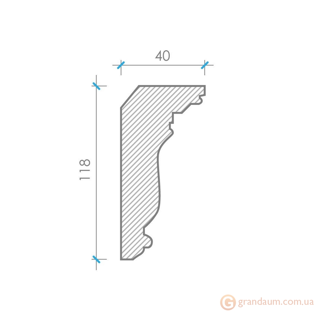 Карниз из гипса к-13 h118х40 мм