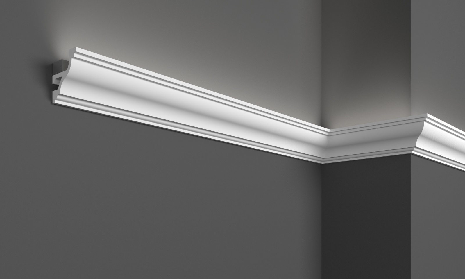 Создайте индивидуальный интерьер, тёплую и уютную атмосферу с помощью карнизов для скрытого освещения из полиуретана и дюрополимера. Карнизы под LED скрытое освещение можно размещать на стене под разными углами, чтобы изменить направление света в интерьере. Благодаря легкому, но прочному материалу установка не представляет сложности. Существует множество возможностей применения, позволяющих создавать уникальные и динамичные интерьеры.