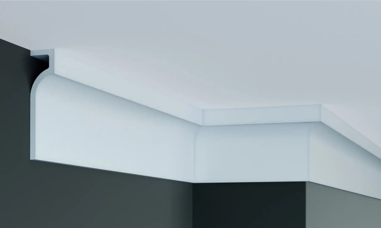 Создайте индивидуальный интерьер, тёплую и уютную атмосферу с помощью гладких карнизов из полиуретана и дюрополимера. Благодаря легкому, но прочному материалу установка не представляет сложности. Этот карниз обеспечит эстетический переход от стены к потолку. Гладкая форма позволяет ему легко сочетаться с различными стилями интерьера, включая самые современные решения.