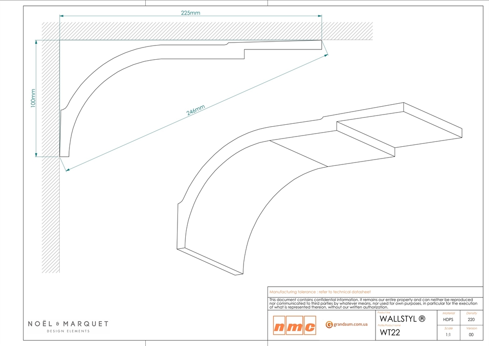 NMC WT22 WALLSTYL® - двусторонний карниз . Установите более длинную сторону на потолок, чтобы зрительно увеличить ширину комнаты, или длинной стороной на стену, чтобы увеличить высоту комнаты. Этот карниз имеет упрощенную форму, сочетающую в себе тонкий изгиб и геометрический край.
