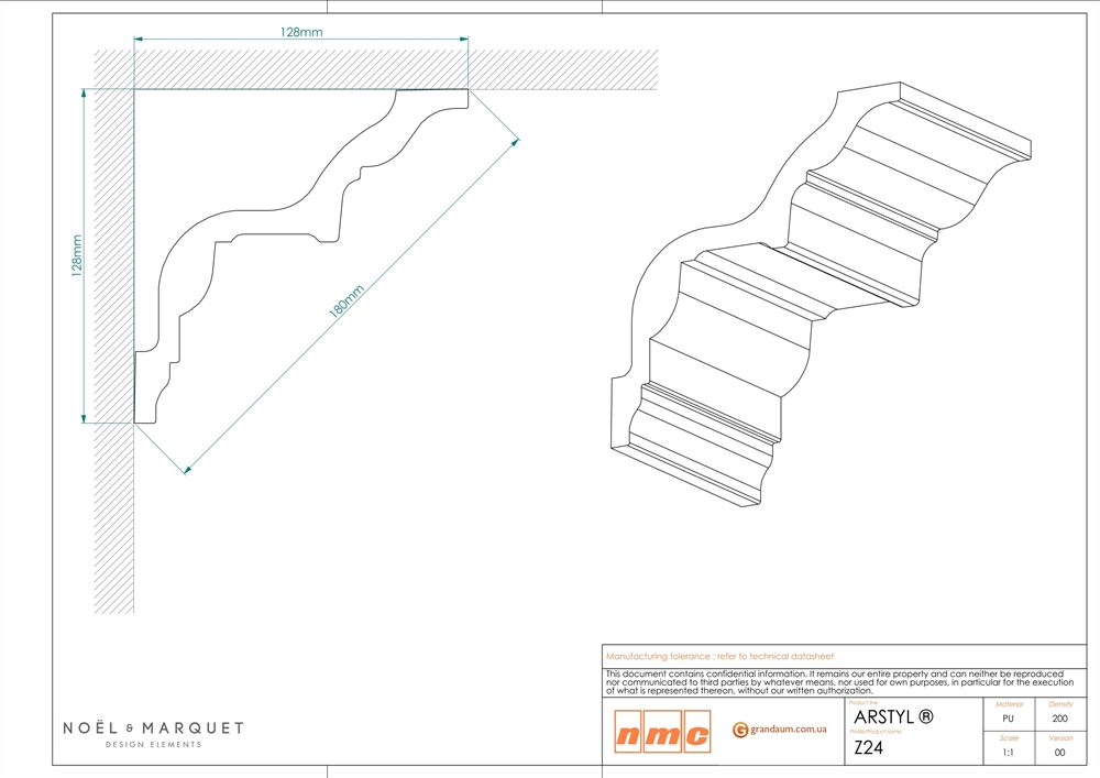 Молдинг Z24 поставляется загрунтованным и готовым к покраске. Установка осуществляется быстро благодаря возможности простого приклеивания легких молдингов к стене и потолку. В задней части карниза достаточно места, чтобы спрятать провода, щели и неэстетичные переходы.