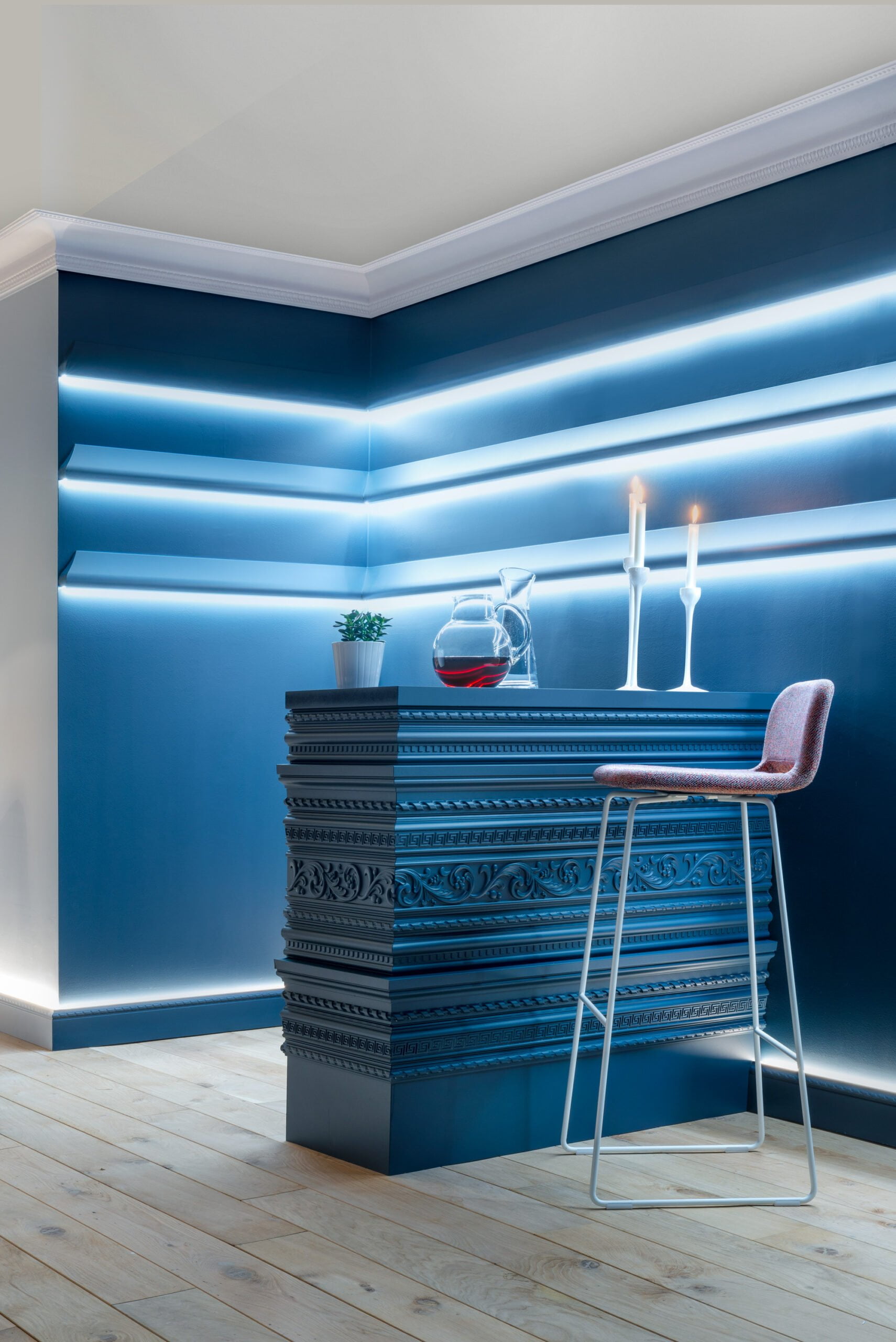 Карнизы поставляются загрунтованными и готовыми к окончательной окраске в желаемый цвет. С обратной стороны молдинга имеется зазор, который идеально подходит для скрытия проводов, неэстетичных переходов и щелей.