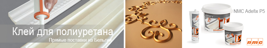 Наша компания напрямую из Бельгии поставляет клей Adefix P5 (Adefix Plus). Наш клей специально разработан для строительных целей, а именно монтажа изделий из полиуретана и полистирола.  С помощью данного клея, возможно, монтировать не только плинтуса, декоративные розетки, панно, молдинги но и все остальные элементы лепного декора. Применять его можно во внутренних помещениях, где поддерживается сухой или нормальный режим влаги. Наилучшим образом клей походит для изделий из полистирола и полиуретана.