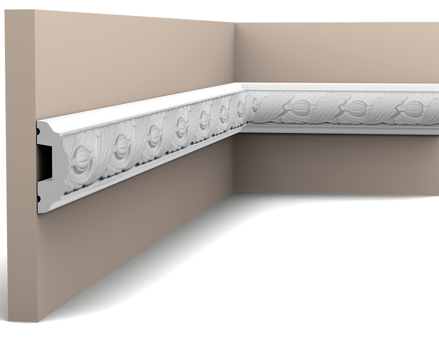 Молдинг украшен листьями аканта и миндалем. Этот молдинг внесет приятные детали в ваш интерьер и подходит для использования как в классических, так и в современных интерьерах. Объедините его с угловым элементом P101A.