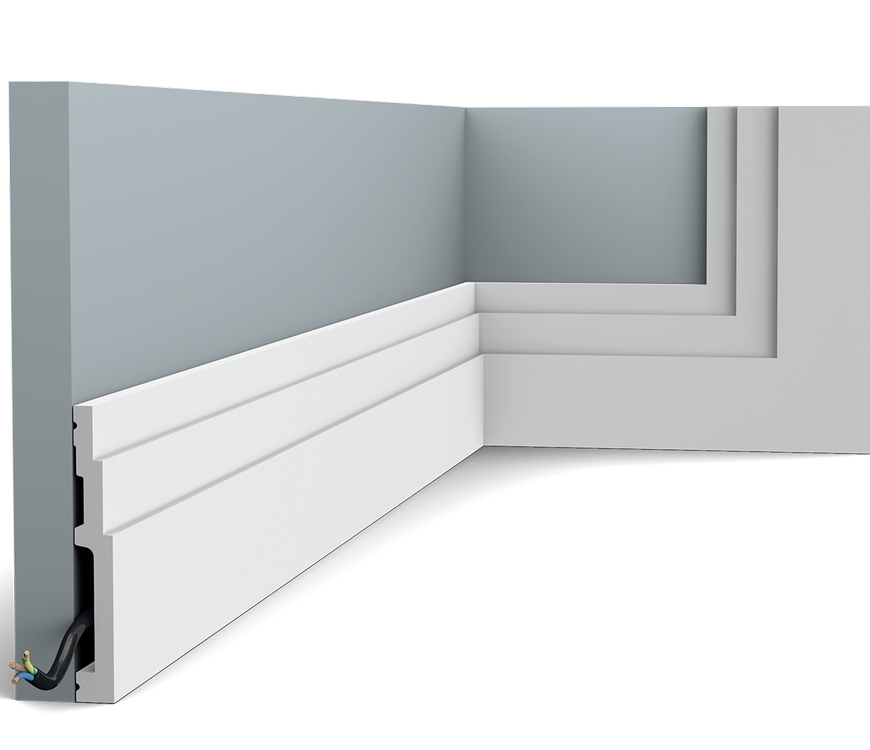 Гибкая версия Orac decor SX180F. Гладкий профиль и идеальные пропорции плинтуса High Line создают идеальный переход между стеной и потолком. Какой бы стиль интерьера у вас ни был. Благодаря технологии производства гибких элементов Flex изогнутые стены и поверхности не представляют проблем.