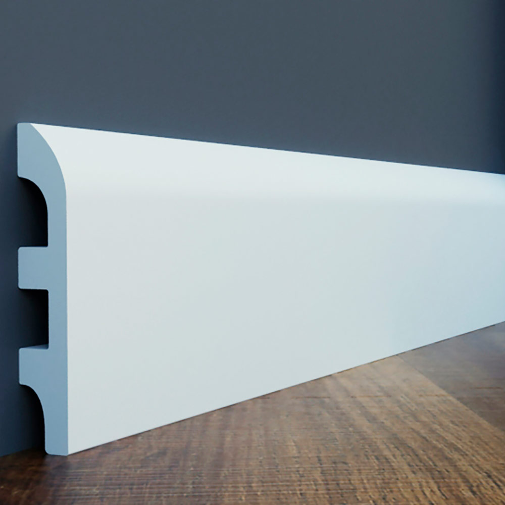 Украсьте свой интерьер пристенным гладким напольным плинтусом. Он обеспечивает плавный и гладкий переход между стеной и полом независимо от напольного покрытия, добавляя завершающий штрих интерьеру. Плинтус визуально привлекателен и практичен благодаря своим ударопрочным свойствам, защищающим от повреждений. В современных модерн интерьерах, а так же в неоклассике такие профили формируют четкие линии, характерные для дизайна. Прочный материал защищает от ударов и повреждений. Напольный плинтус производится загрунтованным и готовыми к покраске.