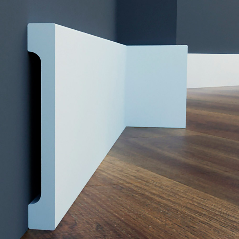 Украсьте свой интерьер пристенным гладким напольным плинтусом. Он обеспечивает плавный и гладкий переход между стеной и полом независимо от напольного покрытия, добавляя завершающий штрих интерьеру. Плинтус визуально привлекателен и практичен благодаря своим ударопрочным свойствам, защищающим от повреждений. В современных модерн интерьерах, а так же в неоклассике такие профили формируют четкие линии, характерные для дизайна. Прочный материал защищает от ударов и повреждений. Напольный плинтус производится загрунтованным и готовыми к покраске.