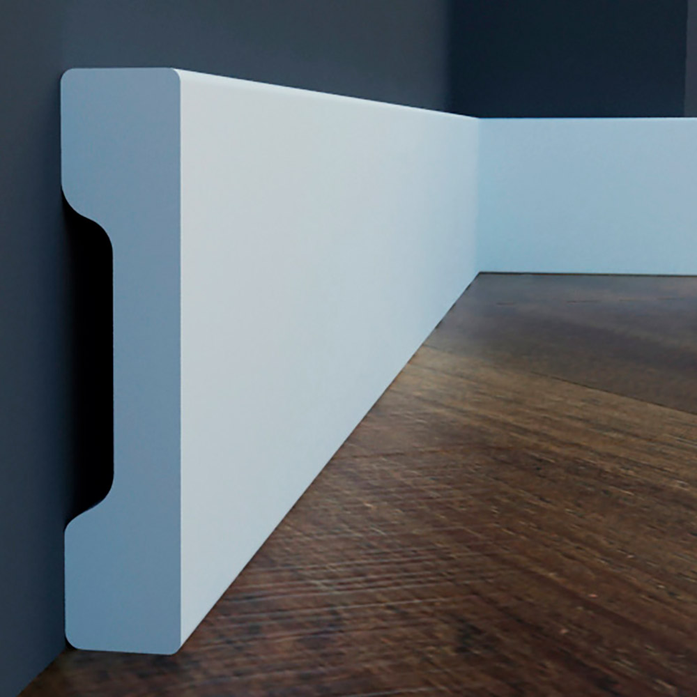 Украсьте свой интерьер пристенным гладким напольным плинтусом. Он обеспечивает плавный и гладкий переход между стеной и полом независимо от напольного покрытия, добавляя завершающий штрих интерьеру. Плинтус визуально привлекателен и практичен благодаря своим ударопрочным свойствам, защищающим от повреждений. В современных модерн интерьерах, а так же в неоклассике такие профили формируют четкие линии, характерные для дизайна. Прочный материал защищает от ударов и повреждений. Напольный плинтус производится загрунтованным и готовыми к покраске.