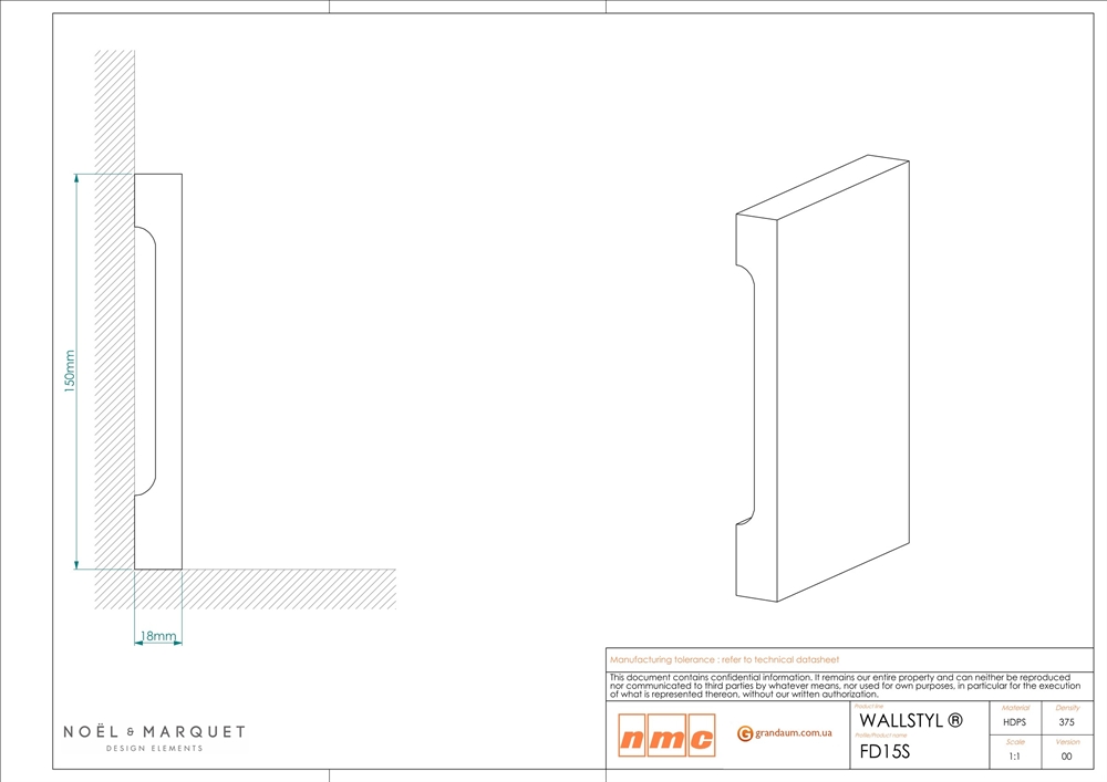 Для современной линейной отделки используйте NMC FD15S WALLSTYL® в интерьере. Упрощенный плинтус, такой как FD15S, добавляет идеальный завершающий штрих в дизайн интерьера. Кроме того, FD15S долговечен и обеспечивает защиту от ударов, повреждений и истирания.
