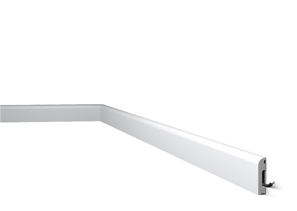 Чистый и минималистичный дизайн плинтуса FL13 делает его популярным декоративным элементом, подходящим для всех типов интерьеров. Его мягкий и округлый мотив помогает задать тон в характере интерьера, добавляя гладкий штрих и придавая интерьерам бесшовную отделку. Более того, изогнутый и наклонный профиль плинтуса также позволит избежать потенциального скопления пыли.