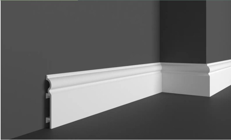 Украсьте свой интерьер пристенным гладким напольным плинтусом. Он обеспечивает плавный и гладкий переход между стеной и полом независимо от напольного покрытия, добавляя завершающий штрих интерьеру. Плинтус визуально привлекателен и практичен благодаря своим ударопрочным свойствам, защищающим от повреждений. В современных модерн интерьерах, а так же в неоклассике такие профили формируют четкие линии, характерные для дизайна. Прочный материал защищает от ударов и повреждений. Напольный плинтус производится загрунтованным и готовыми к покраске.