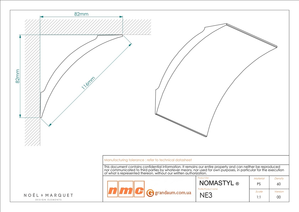 Установка легких молдингов выполняется быстро и эффективно. Чтобы зафиксировать карниз NE3 PURE, просто приклейте каждую секцию в ее конечное положение с помощью клея ADEFIX®. Карниз может скрыть проводку, щели и неэстетичные переходы. Покрытие NE3 PURE изготовлено из полистирола и поэтому полностью пригодно для вторичной переработки.