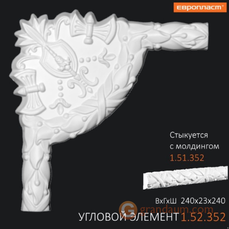 Для установки декоративного элемента Европласт 1.52.352 требуется монтажный клей NMC Adefix P5 и стыковочный клей (по желанию клиента) NMC Adefix Plus или Orac decor Decofix Pro FX200/210. Количество клея Вам поможет рассчитать наш специалист.